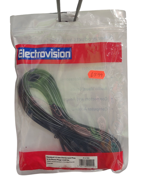 Electrovision Standard 3.5mm Stereo Jack Plug to 2x Phono Plugs Lead 5m A121BA