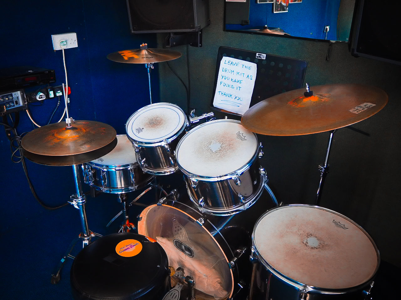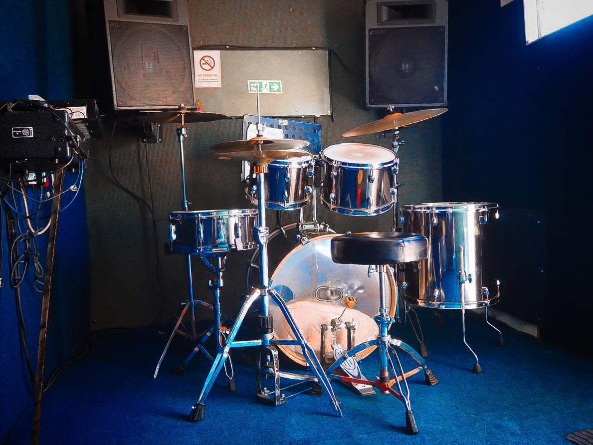 Studio 5 is a drum rehearsal studio suitable for individual drum practice or one-on-one lessons. It is equipped with a drum kit, a PA, and iPOD/MP3 playback.